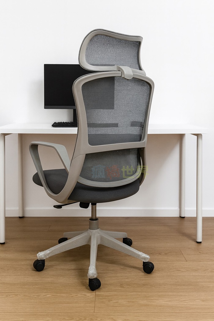椅背與頭枕使用透氣網布材質,增加通風性,適合長時間辦公或夏季使用,避免悶熱。