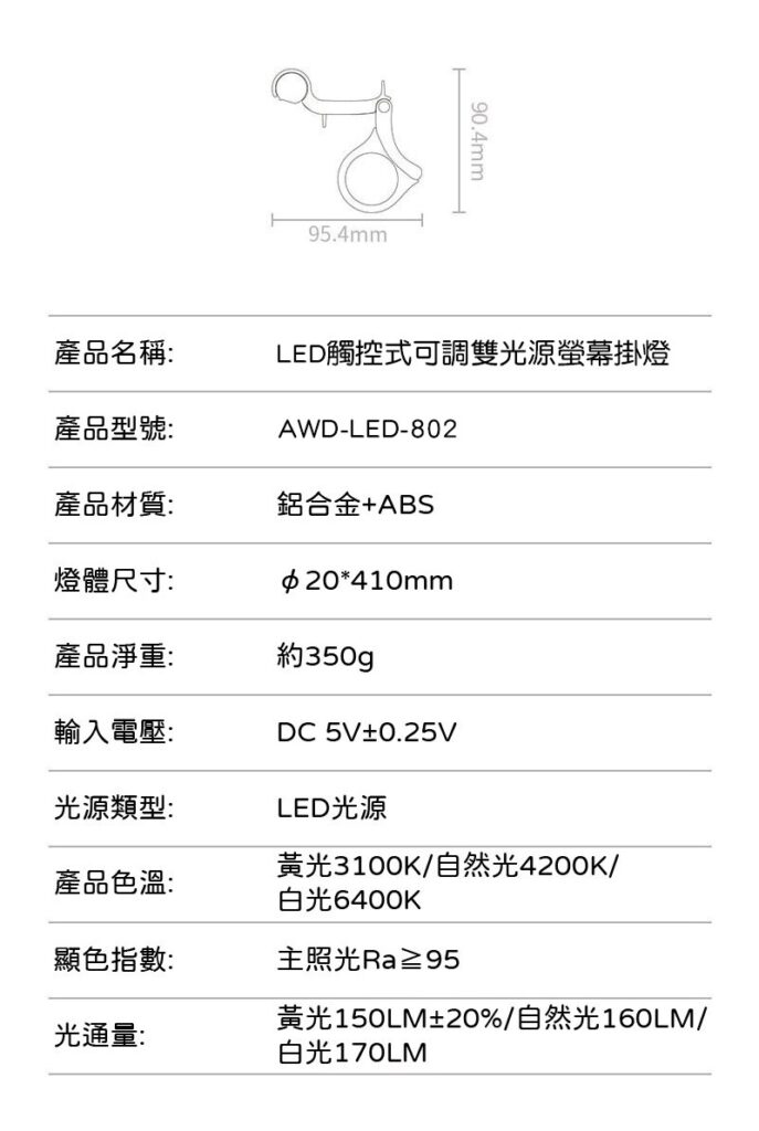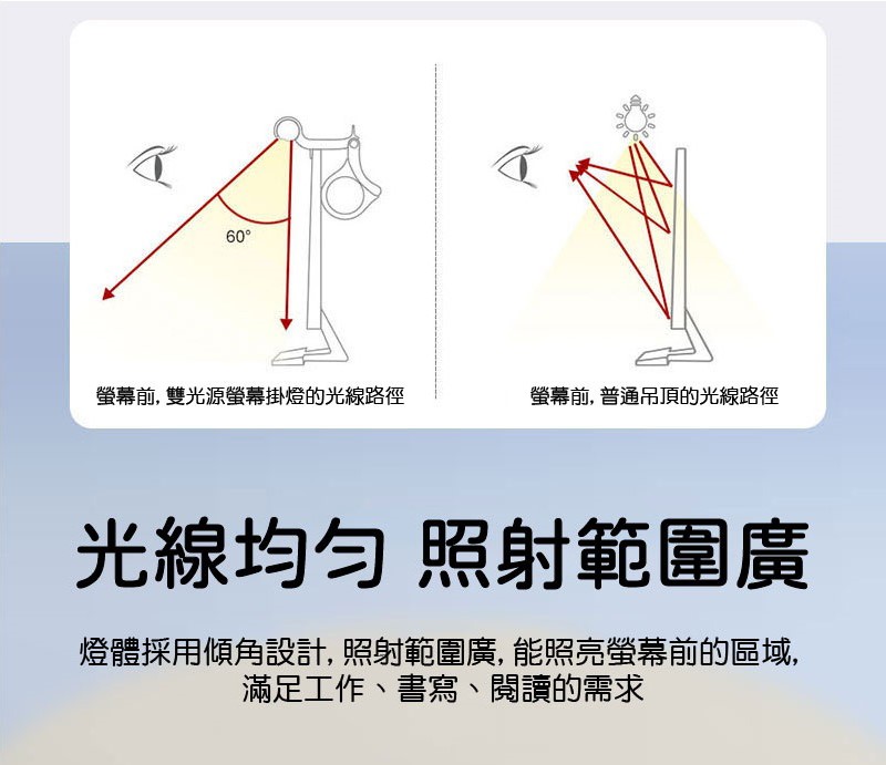 Ø 非對稱光源,不照射螢幕,可減少螢幕反光且保護眼睛不易疲勞