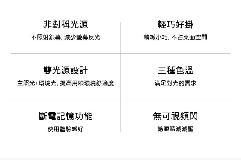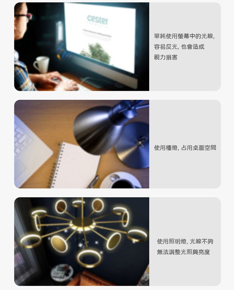 Ø 雙光源設計─主照光+環境光,提高用眼環境舒適度