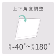 輕鬆調整觀看視角,讓工作更舒適;更可快速調整追劇、打電動的角度,ON / OFF 瞬間切換。