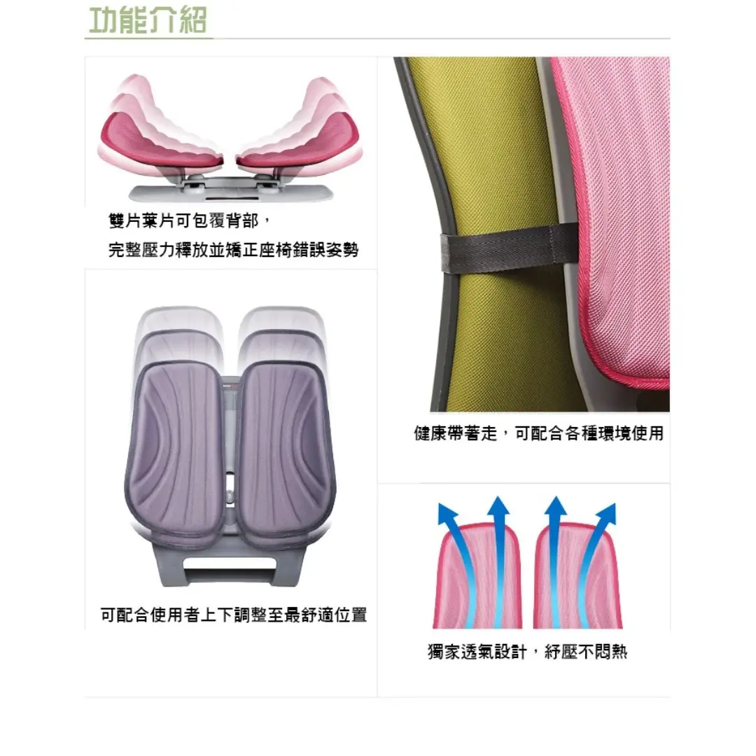 - 🧘♂️ 雙葉片設計包覆背部,可調節貼合釋放壓力,有效改善久坐姿勢