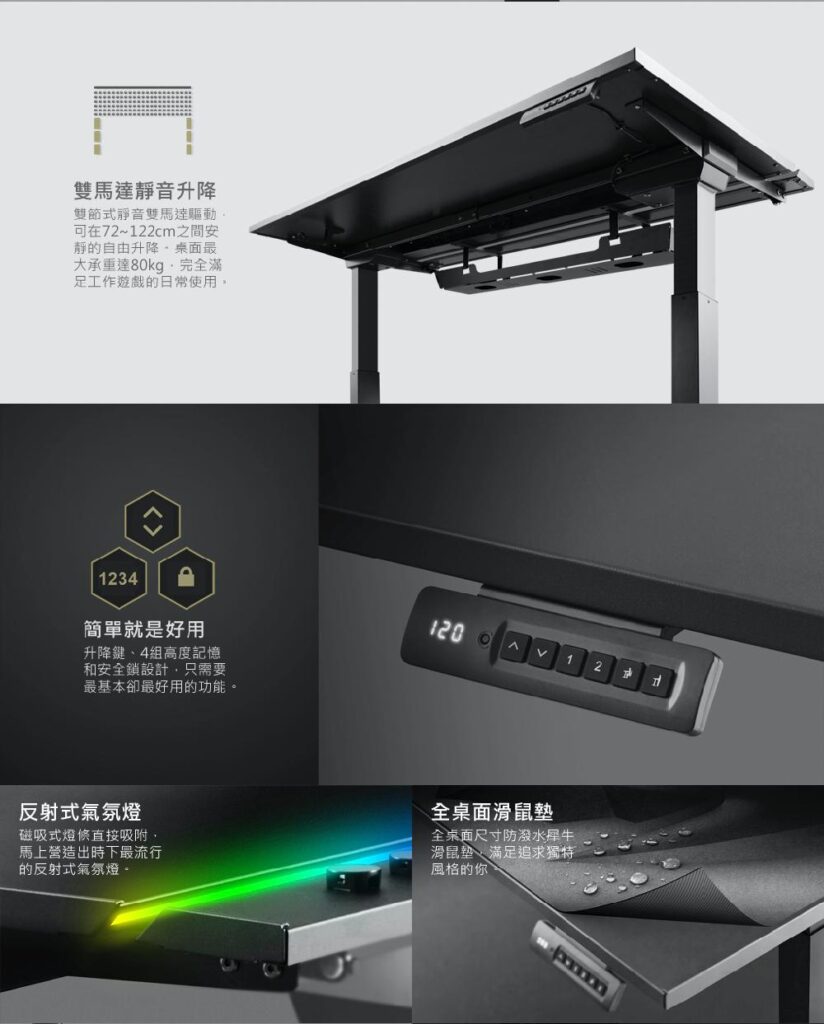 ● 1年保固:桌板、電子控制總成、配件