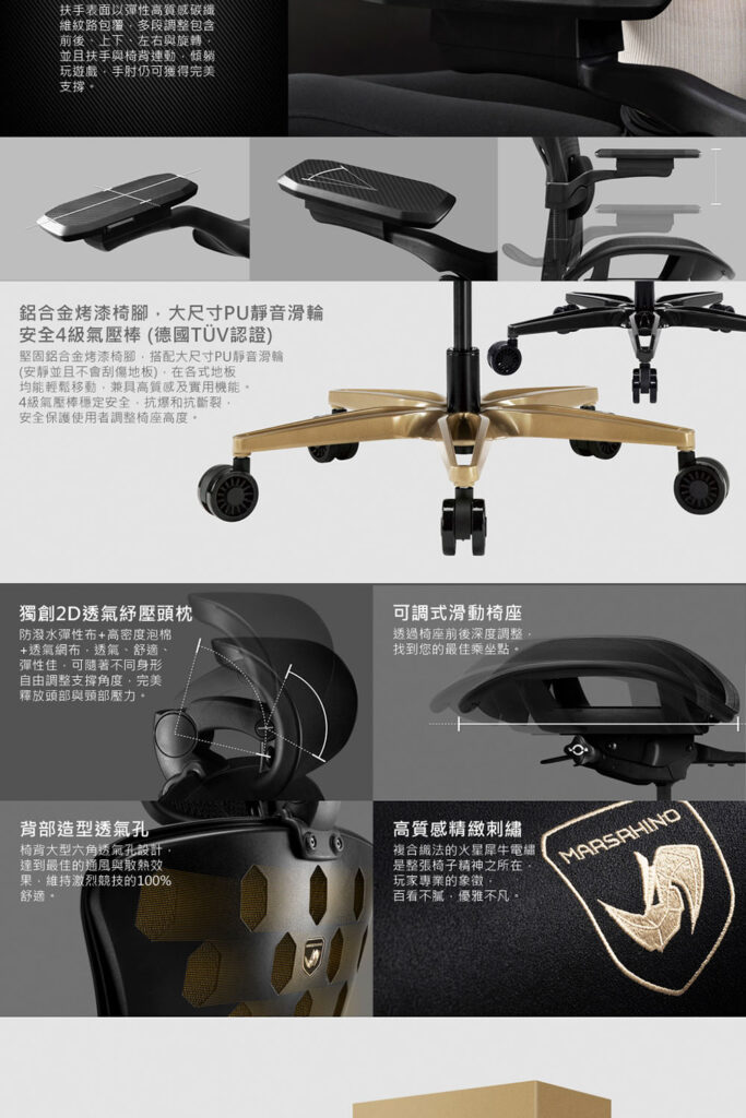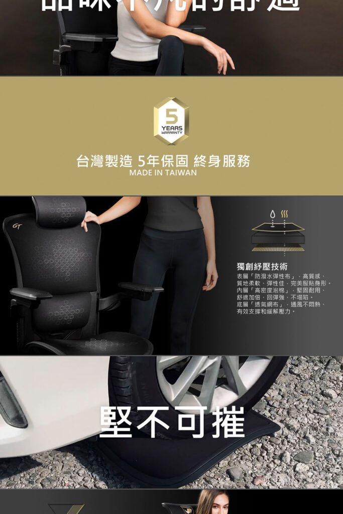● 獨創透氣紓壓椅背+椅座