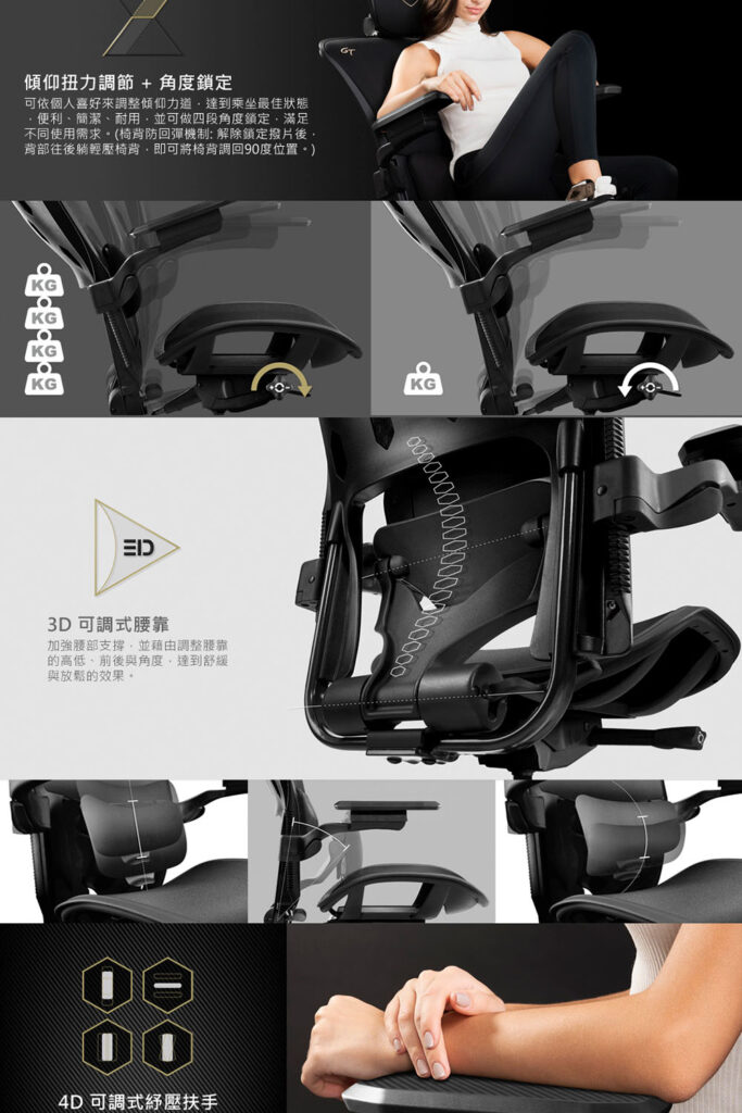 ● 獨創3D可調式腰靠設計