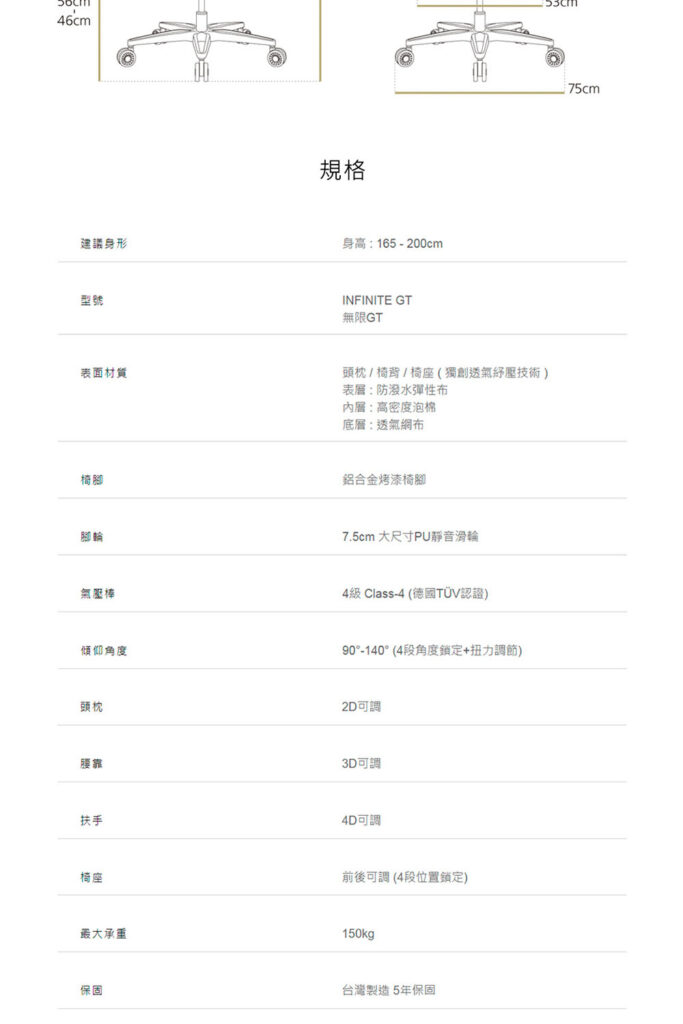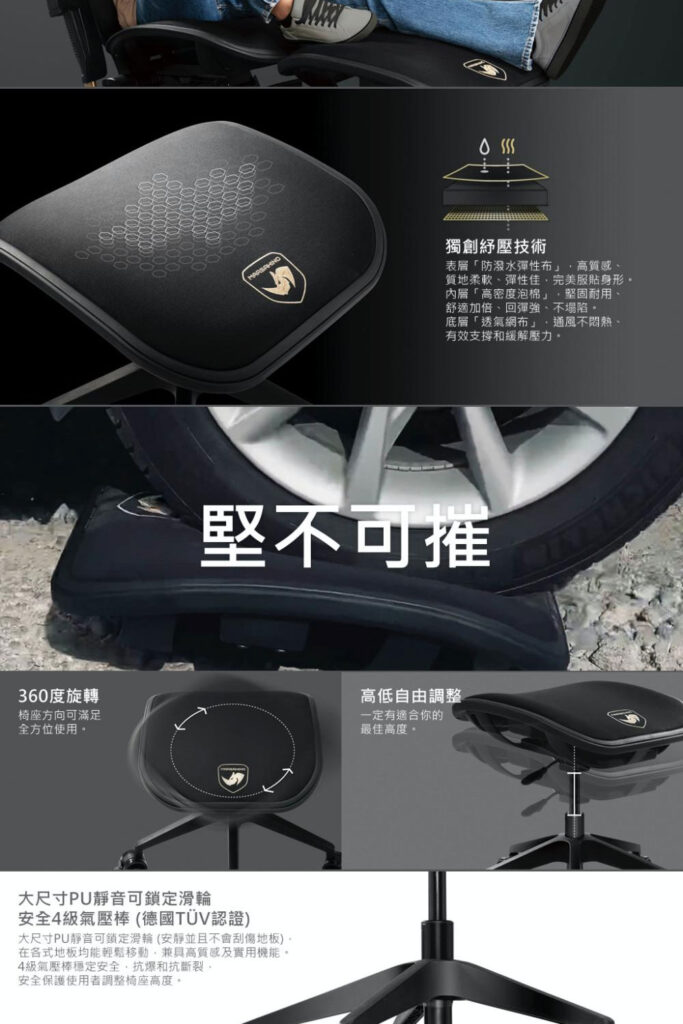 ● 安全4級氣壓棒 ( 德國TÜV認證 & 美國BIFMA認證 )
