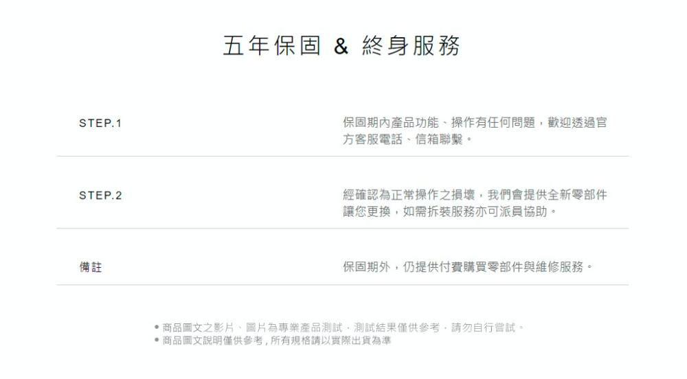 - ● 台灣製造,5年保固,終身服務