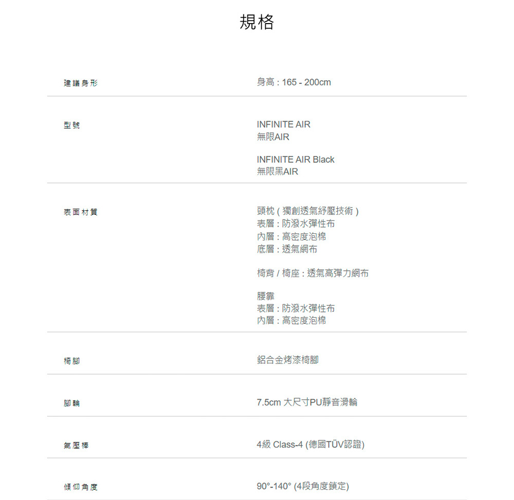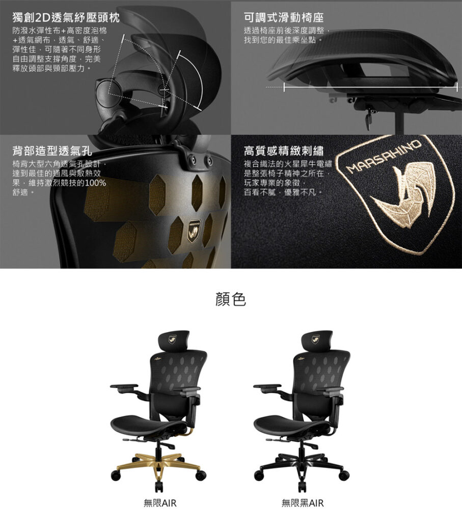 - ★椅背 / 椅座 : 透氣高彈力網布