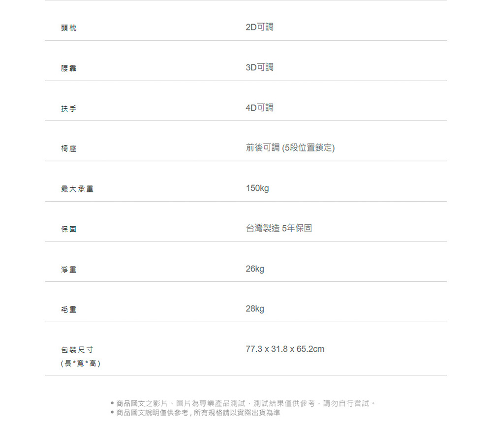 - ● 5年保固:椅背、椅座、椅腳