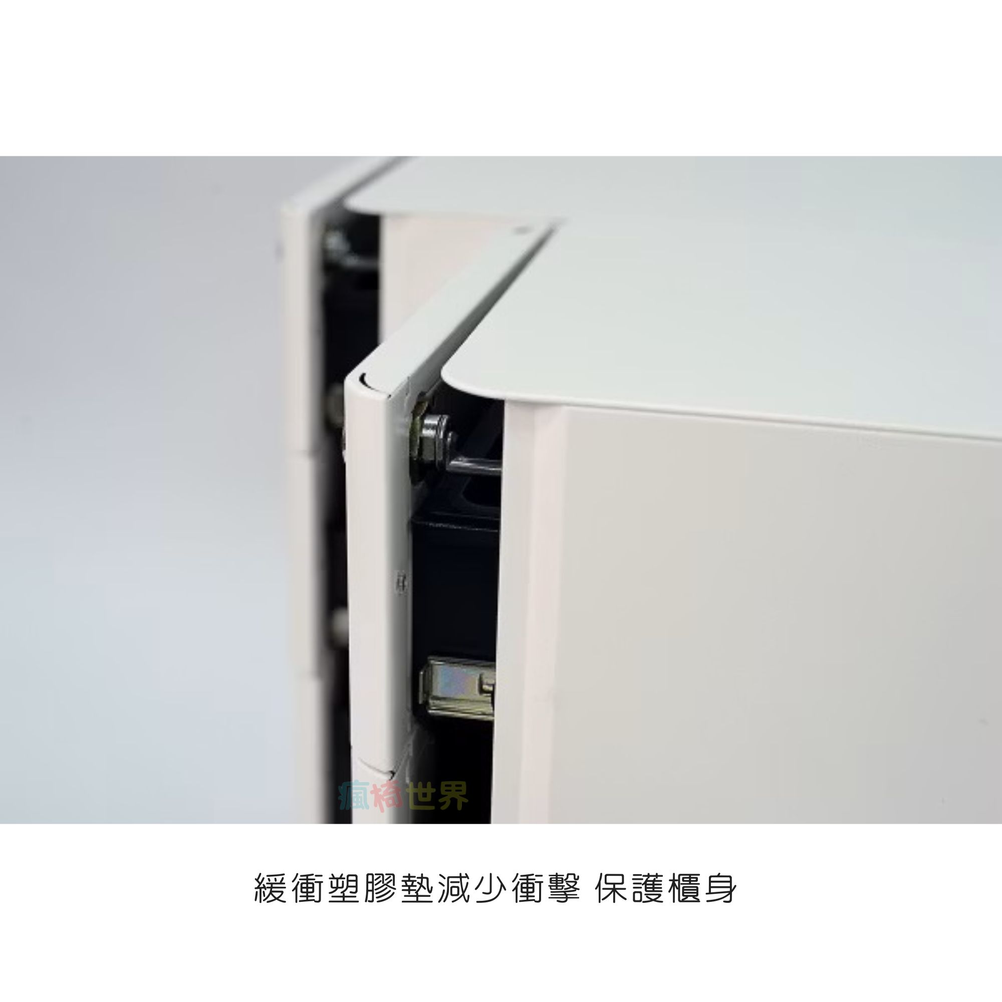堅固耐用: 櫃體採用鍍鋅鋼板,全自動粉體烤漆處理,防鏽耐用。