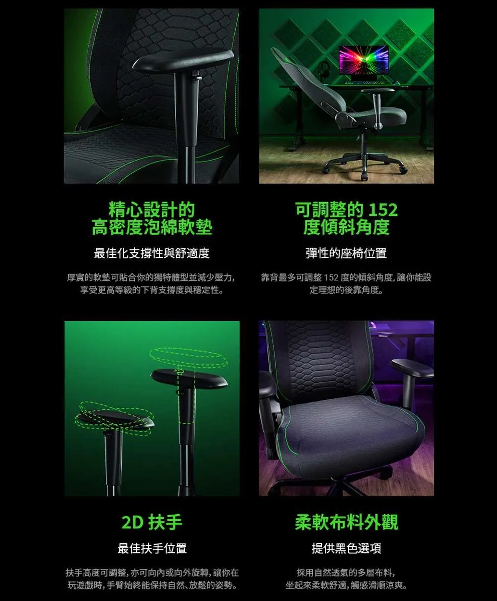 靠背最多可調整 152 度的傾斜角度,讓你能設定理想的後靠角度。柔軟布料外觀