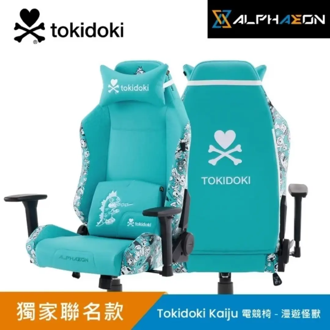 - Alphaeon × tokidoki 聯名款「Kaiju電競椅」,將 tokidoki 的潮流美學與 Alphaeon 的人體工學技術完美融合。清新藍綠配色搭配怪獸圖騰設計,風格鮮明,為您的書房、工作區或遊戲空間增添潮流魅力。