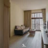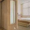 以柔和米色為主軸,搭配淺木系櫃體與大面採光設計,讓小坪數宅也能擁有開闊視野與溫暖調性。